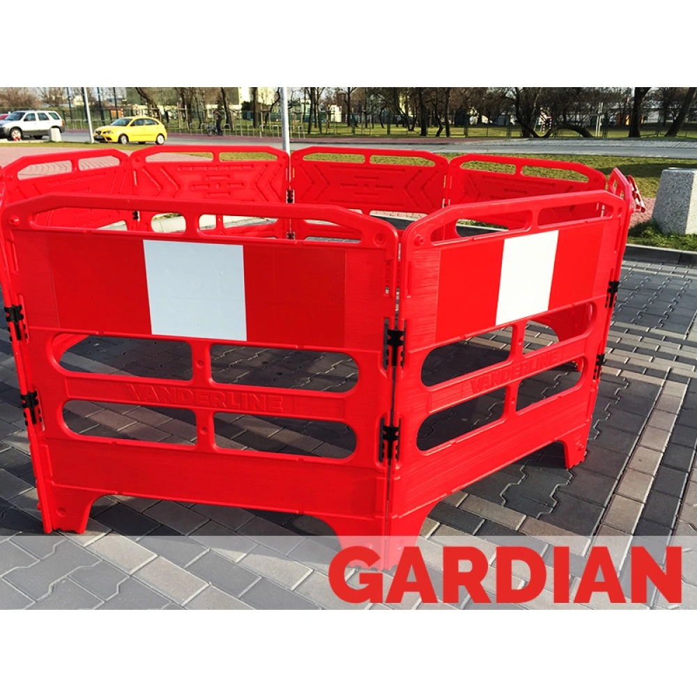 Barierele Gardian sunt echipate standard cu o bandă de avertizare ridicată din folie reflectorizantă.