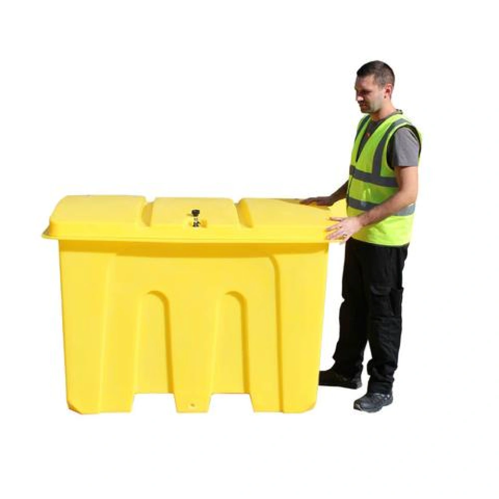 Container stradal pentru material antiderapant - containerul este fabricat din polietilena reciclata 100% foarte rezistent la uzura si la razele UV, conceput special pentru a depozita materialul anti-derapant (diferite combinatii: sare, sare+nisip, nisip+alte componente). Are o rezistenta sporita la substantele chimice cu care poate intra in contact.