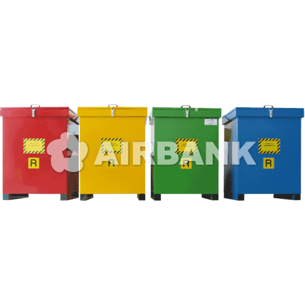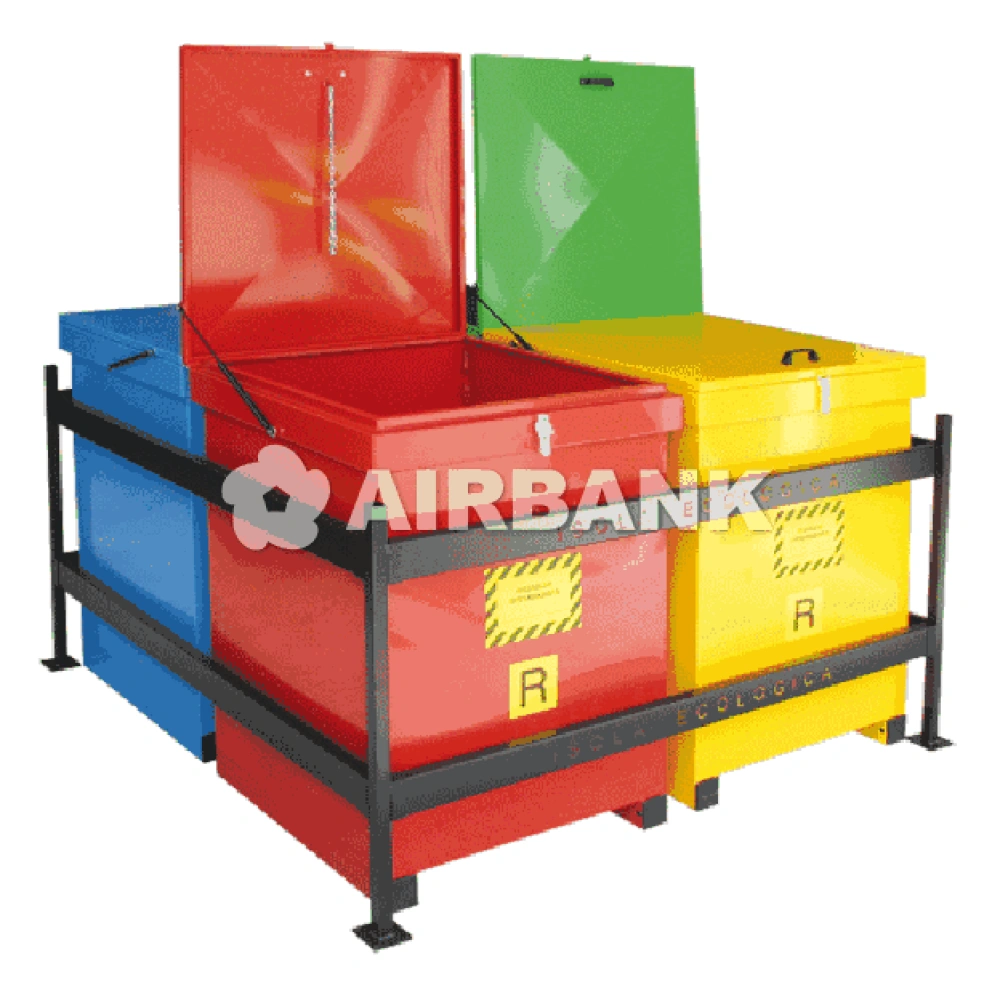 Container deseuri selective industriale - compus din 4 containere independente, fiecare in parte cu un big bag in interior. Cadru cu deshidere pentru a permite manevrarea usoara a big bag-urilor cu un motorstivuitor.