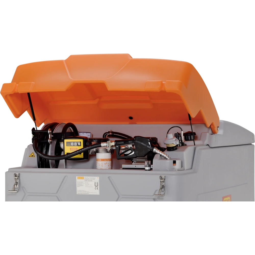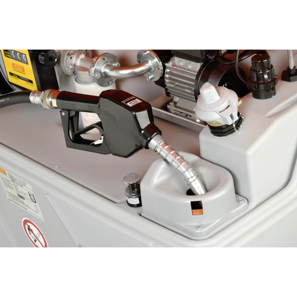 Rezervor pentru carburant diesel fabricat in intregime din polietilena, dispus cu pereti dublii, capac de protectie, alarma de avertizare scurgere, cuplare la cisterna, senzor electornic de supraumplere, aerisire, display analogic nivel, furtun de aspirare.