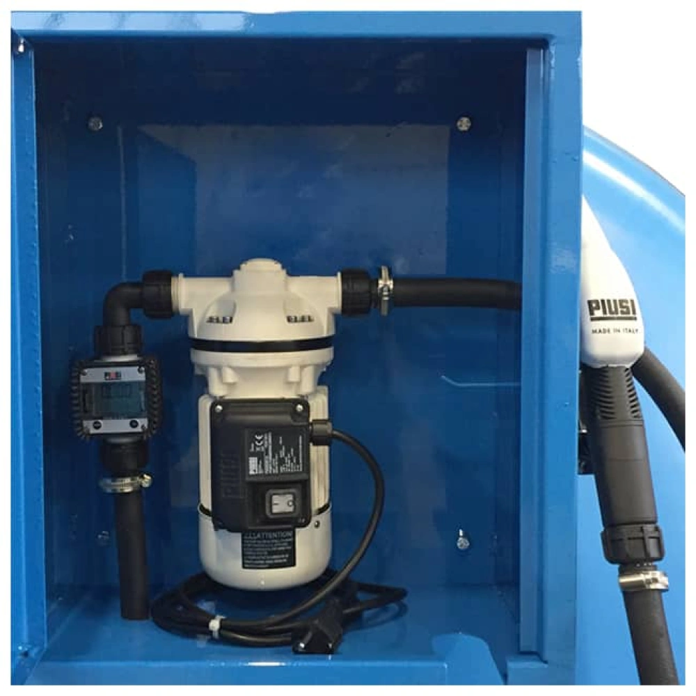 Rezervoarele AdBlue sunt echipate cu o statie de distribuire inchisa intr-un dulap metalic vopsit, cu incuietoare cu cheie, care include: