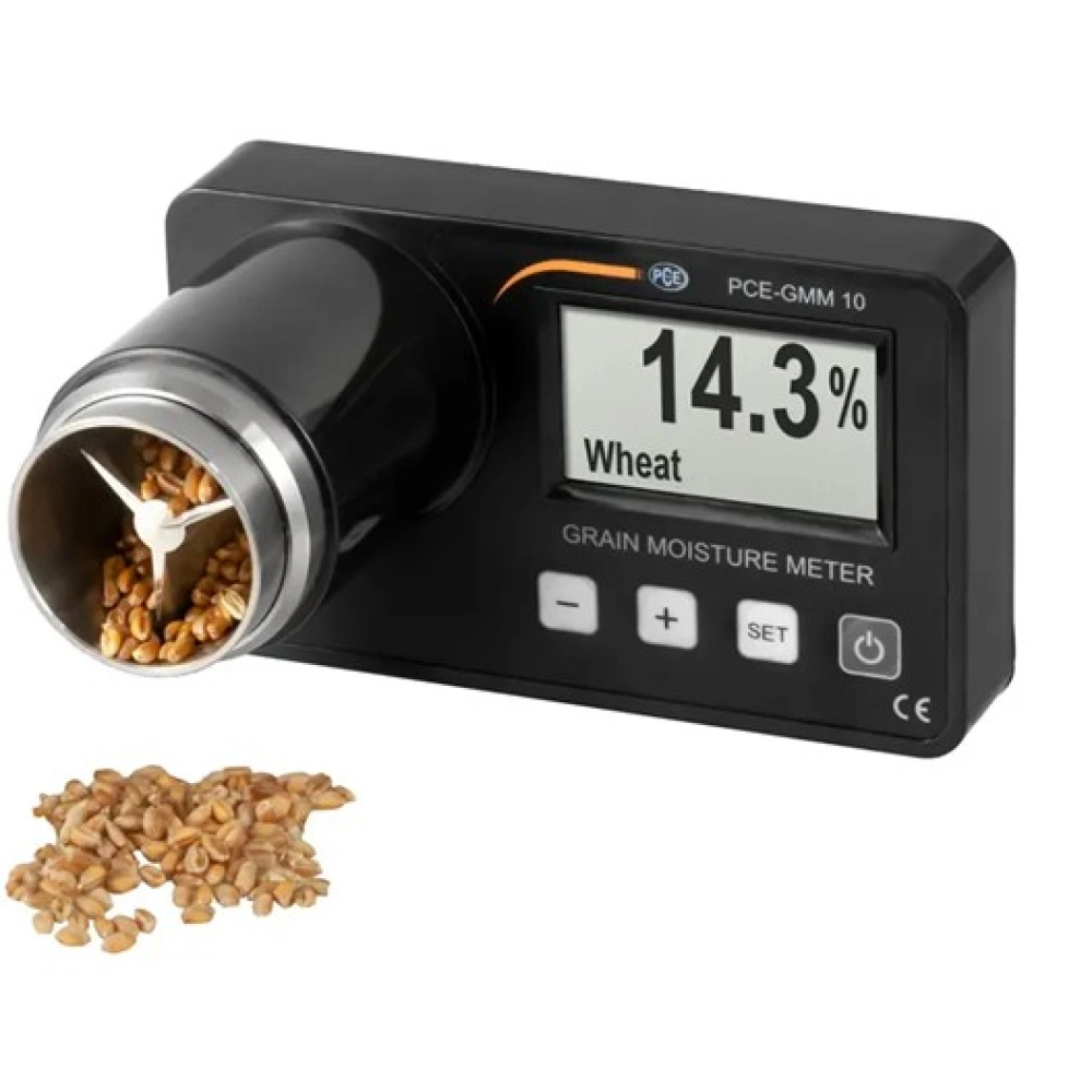 Pentru a depozita grâul, porumbul, meiul și alte tipuri de cereale fără ca boabele să fie deteriorate, trebuie mai întâi să fie uscate. Cerealele pot fi depozitate numai atunci când conținutul de umiditate atinge 14,5 la sută. Cu toate acestea, deoarece este adesea recoltat pe vreme umedă, este necesar un proces de uscare ulterior. Acesta este singurul mod de a elimina umiditatea excesivă din boabe. Dacă boabele conțin prea multă umiditate în timpul depozitării, există un risc mare de atac de ciuperci, ceea ce face ca boabele să fie inutilizabile. Umiditatea poate fi determinată rapid și ușor cu umiditatea pentru cereale de la PCE Instruments, un contor de umiditate pentru cereale integrale. Practic, se aplică următoarele: cu cât boabele sunt mai uscate, cu atât este mai puțin probabil ca bacteriile și ciupercile să se răspândească. Domeniul de măsurare al umidității pentru cereale este mare și merge de la 4,5 la 40 la sută, în funcție de tipul de cereale. După uscare, în funcție de cazul de aplicare, boabele sunt umezite din nou parțial la 16 până la 17%. Acest lucru se face atunci când boabele urmează să fie măcinate. Umiditatea de 14% este prea scăzută pentru măcinare, așadar, umiditatea cerealelor poate fi folosită și pentru a determina granița dintre boabele stocabile și cele care pot fi măcinate.