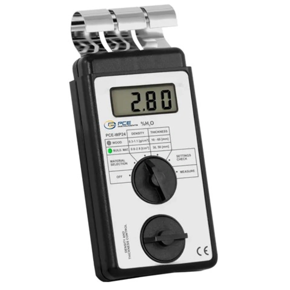 PCE-WP24 este un contor de umiditate absolută a lemnului utilizat pentru a efectua măsurători neinvazive, nedistructive ale umidității lemnului, lemnului și a altor materiale de construcție sau de construcție. Un instrument ideal pentru a evalua orice, de la cheresteaua la podele și multe altele, acest umidificator utilizează unde electromagnetice care penetrează aproximativ 50 mm / 1,96 inchi până la 60 mm / 2,36 inchi adâncime (în funcție de substrat) pentru a returna un procentaj de umiditate în valoare medie.