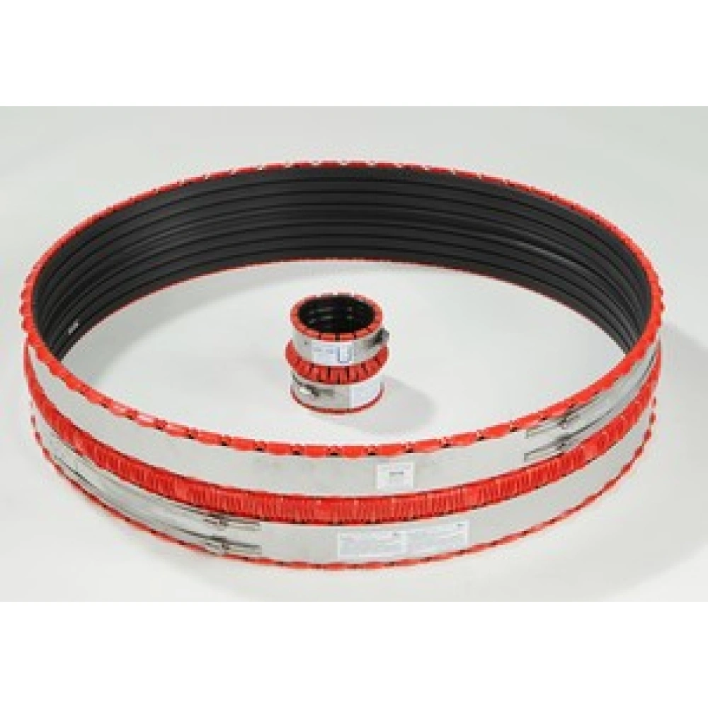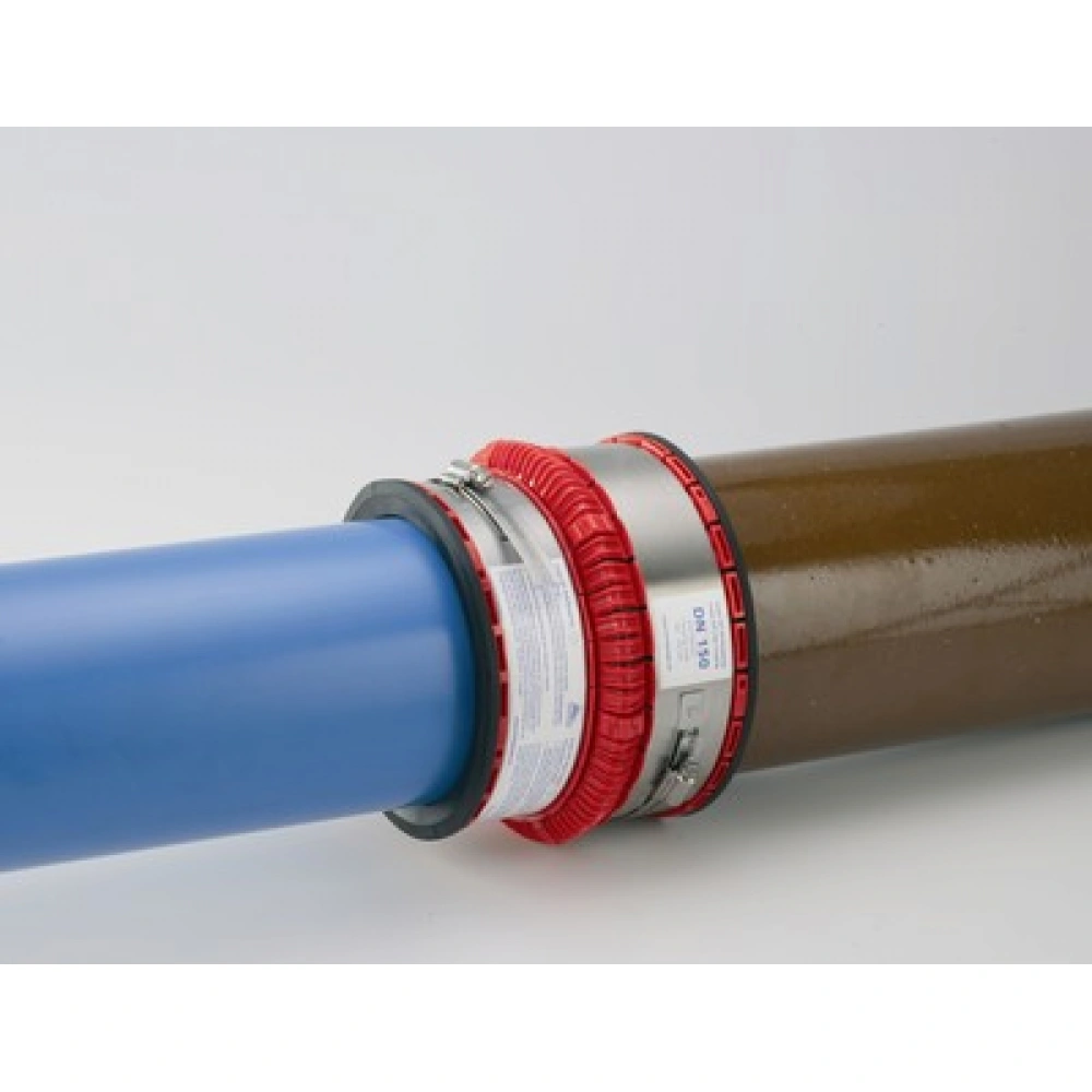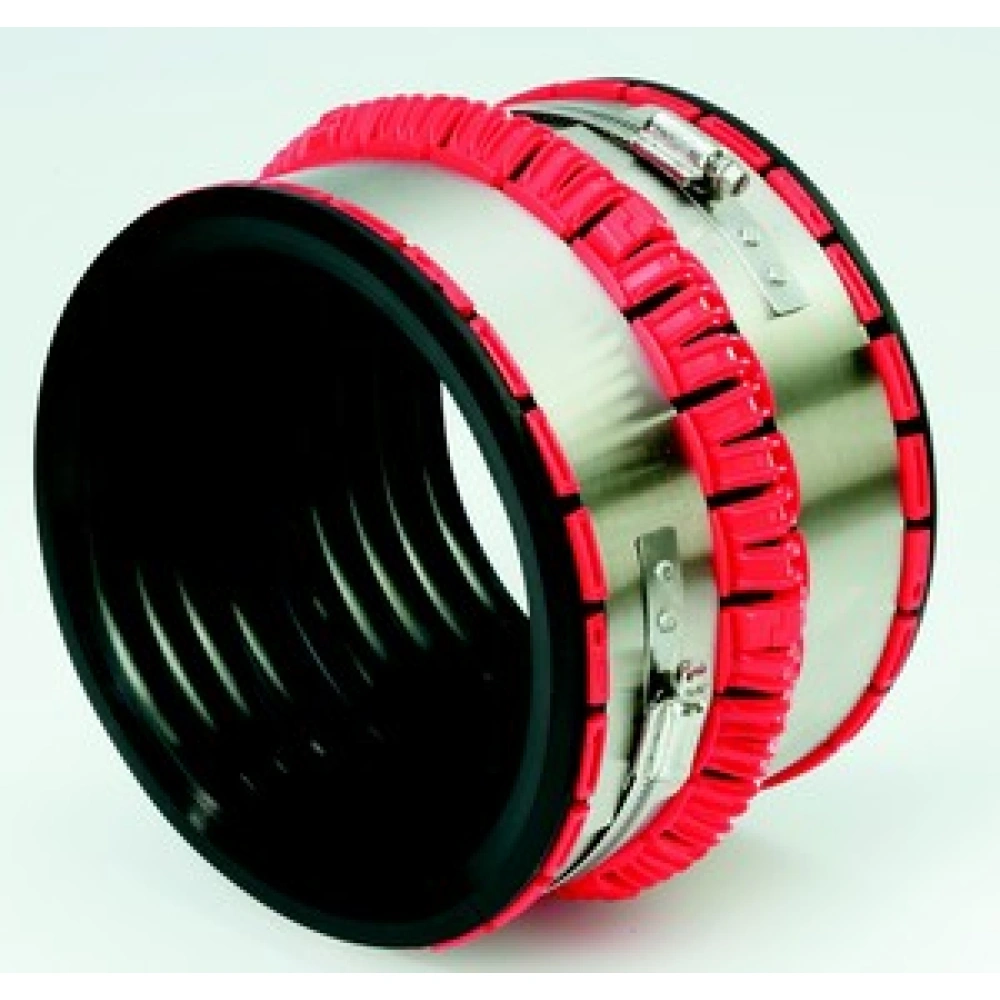 - pentru imbinare conducte din orice tip material, confectionat din cauciuc si elastomeri cu sistem de intaritura conic care permite o anumita toleranta de miscare. Sistemul de intaritura este format din doua cleme din otel inoxidabil AISI 304.