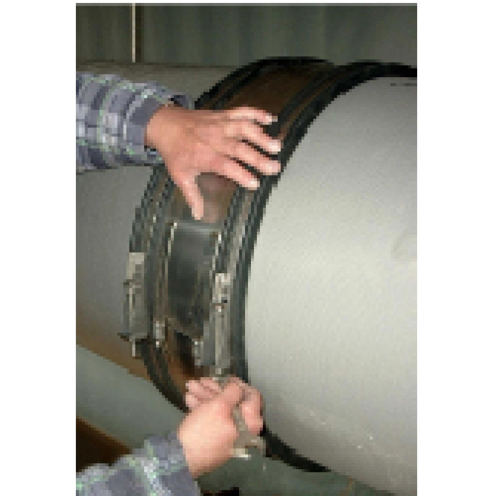 Cuplaj reparare conducte fisurate - confectionat din cauciuc EPDM, dispune de un sistem de strangere cu coliere din inox.