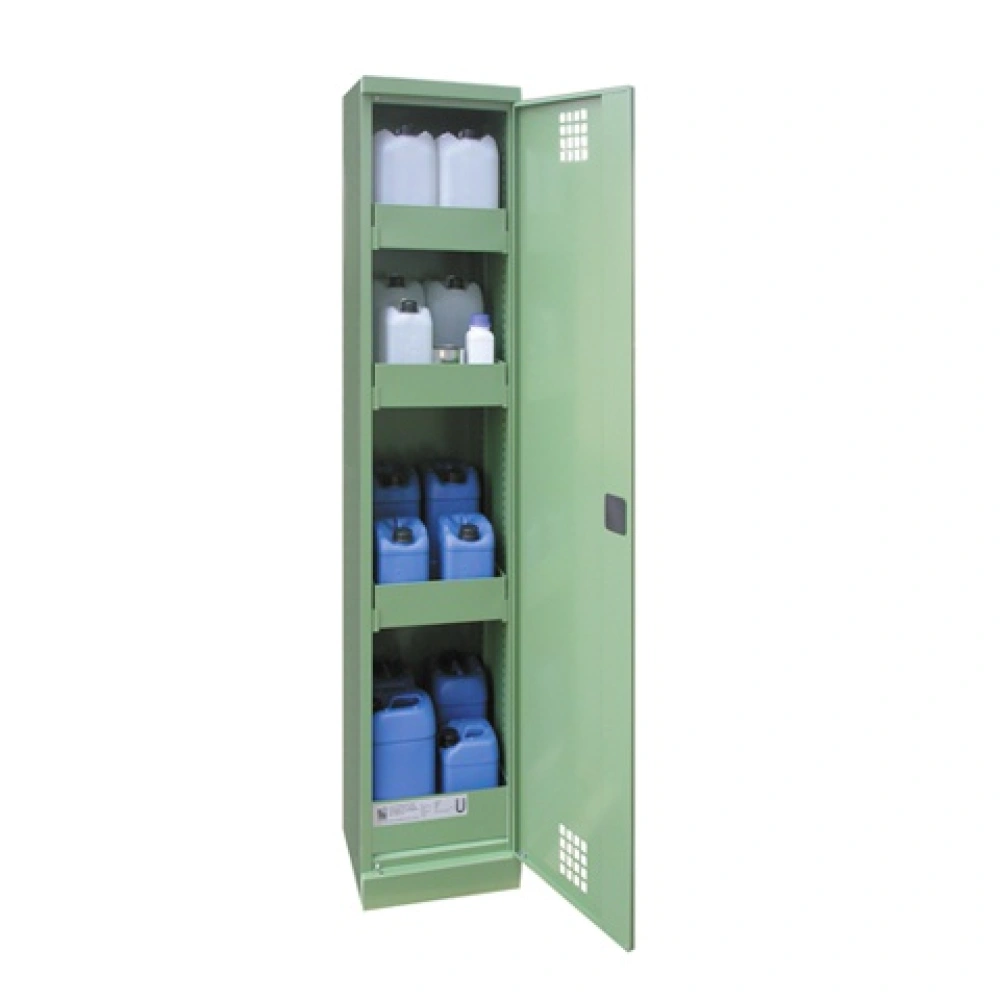 - pentru pastrarea in conditii de siguranta a recipientelor mici din plastic pline cu diferite lichide. Rafturi interioare reglabile, cuva de captare a scurgerilor accidentale, cu o capacitate de 30l. Usa este prevazuta cu orificii pentru o buna ventilare in interiorul dulapului, deasemenea usa dispune si de o incuietoare cilindrica. Fiecare raft o tavita de captare a lichidelor si scurgerilor accidentale.