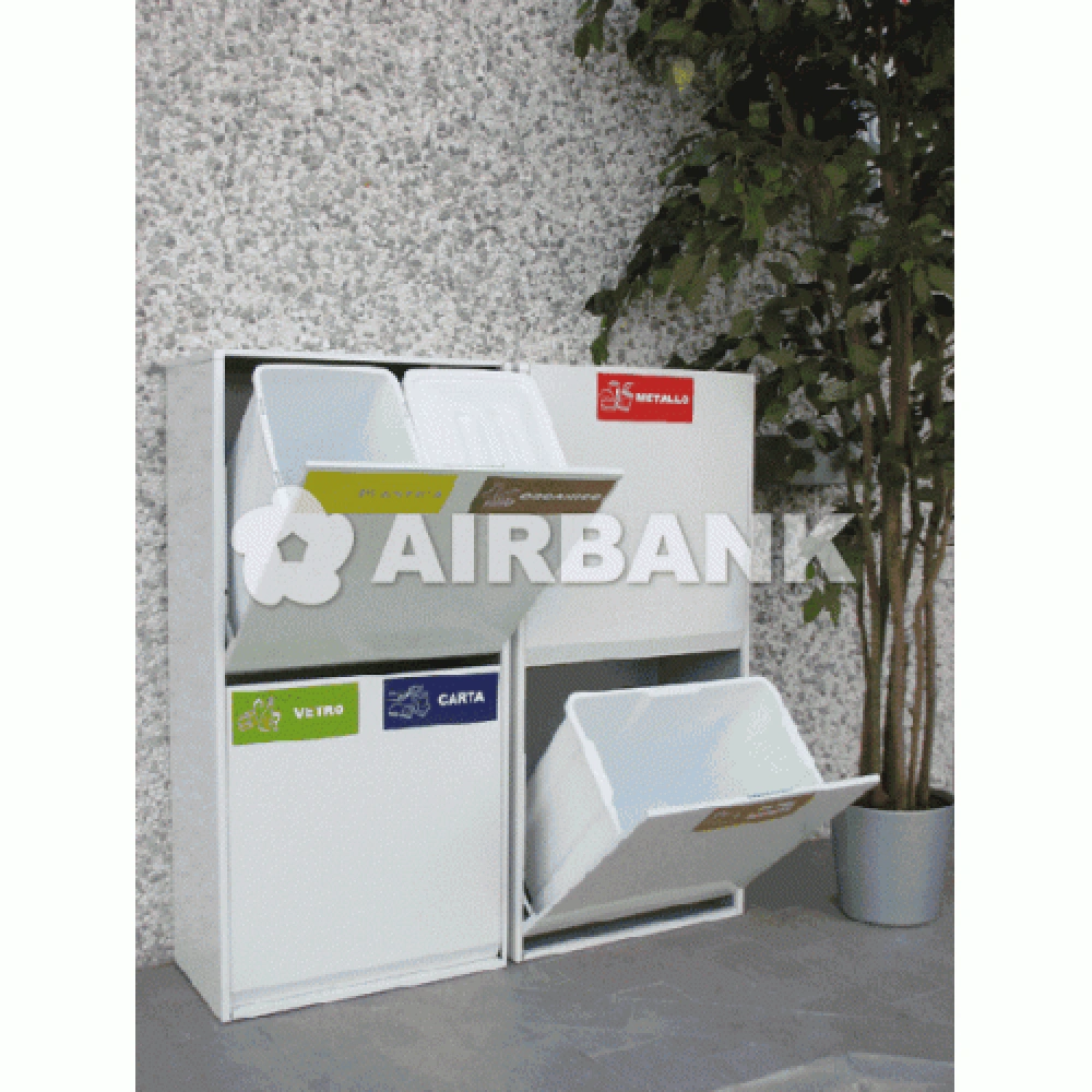 - confectionat din otel, usi rabatabile, 4 containere pentru deseuri, posibilitate de prindere in perete.