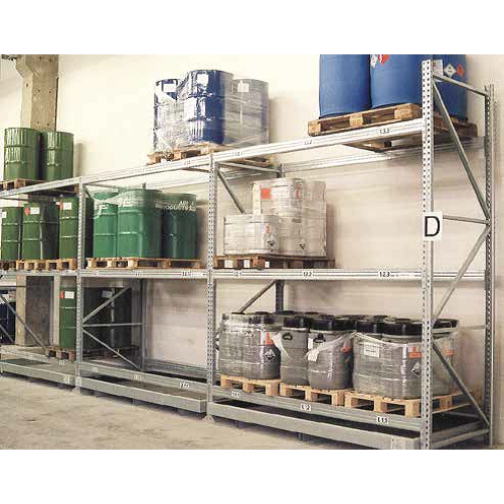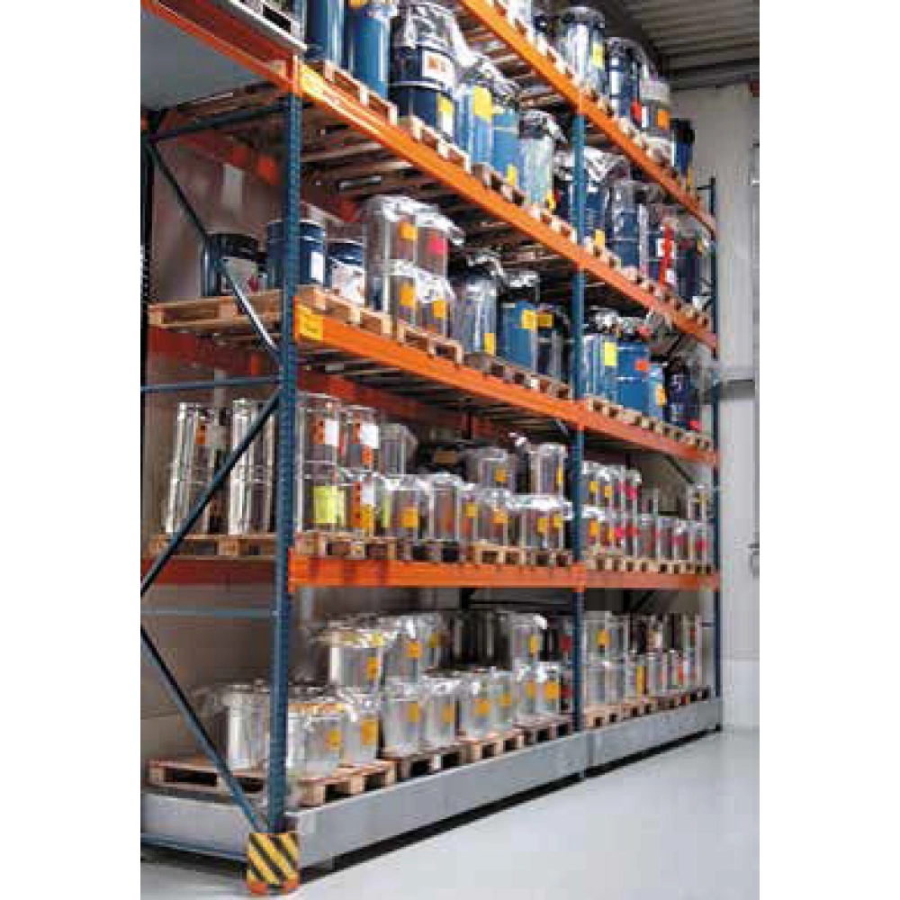 - pretabile pentru butoaie si containere IBC, se potrivesc si pentru europaleti. Usor de asamblat, rafturile mobile, pot fi reglate la un interval de 5 cm, toate elementele sunt realizate din metal galvanizat, pentru a asigura o protectie sporita la agenti chimici, umezeala si rugina. Raftul se poate utiliza cu succes si in exterior. Modulul are 3 rafturi.