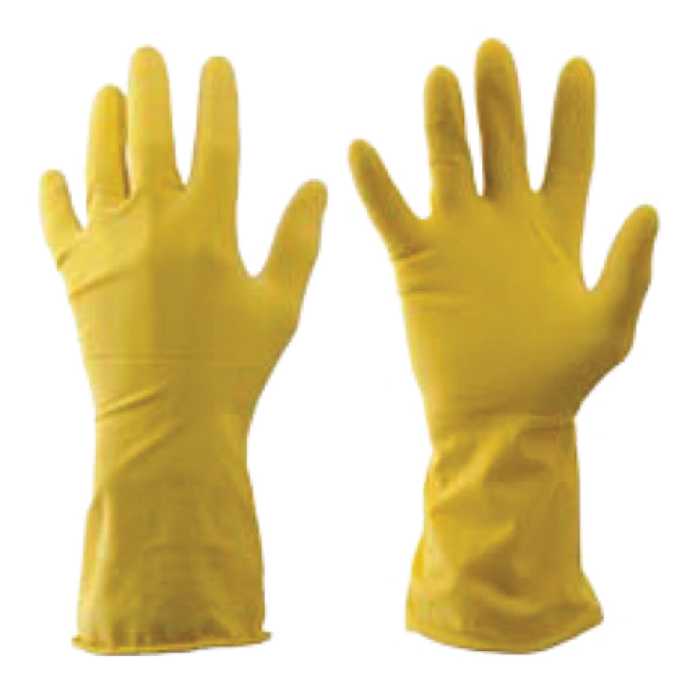 Manusi de menaj, fabricate din latex galben, finisaj in palma pentru aderenta.