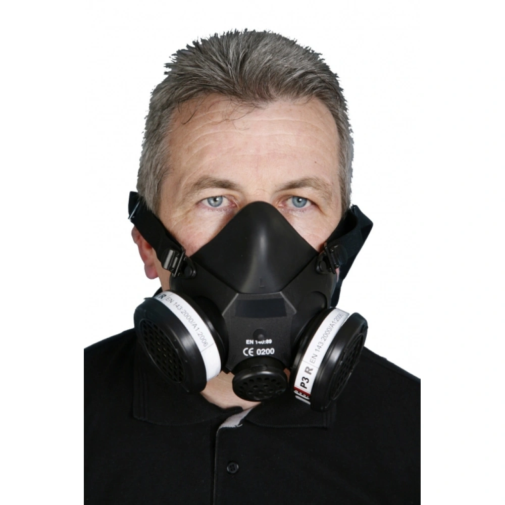 Semimasca de protectie cu doua filtre pentru utilizare in zone sau spatii cu un grad mai ridicat de risc. Fabricata din silicon, este maleabila dar si foarte rezistenta, prinderea pe cap se face cu benzi elastice reglabile. Posibilitate de alegere un un numar mare de filtre, este destinata unui numar mare de domenii de utilizare. EN140:1998