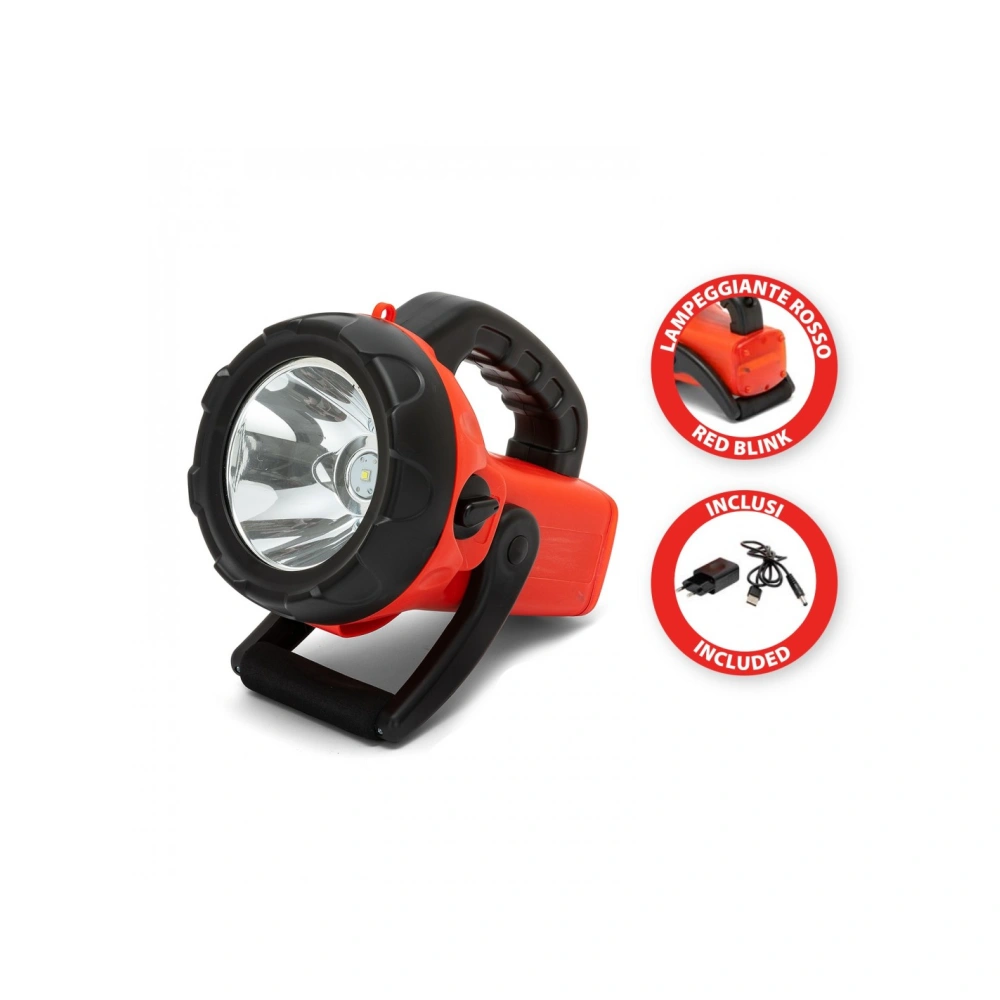 Lanterna cu LED 10W cu corp din cauciuc rezistent la socuri si la umiditate. Bateria este reancarcabila, capacitate baterie 4800 mAh