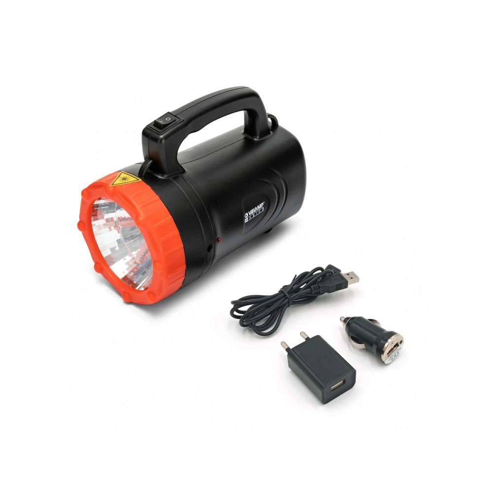 Se livreaza cu adaptoare pentru masina si priza normala. Are o putere de 90 de lumeni datorită LED-ului de mare putere de 1W și reflectorului de performanță Velamp.
