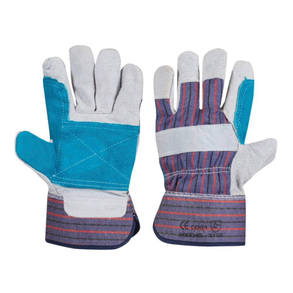 Manusi din piele de porc, grosime 0.8mm, cu tesatura de bumbac dungat pe dosul palmei si manseta.