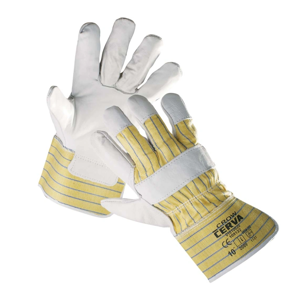 Manusi cu palma din piele de bovina, catusite suplimentar in zonele des utilizate, dosul palmei si manseta din tesatura de bumbac.