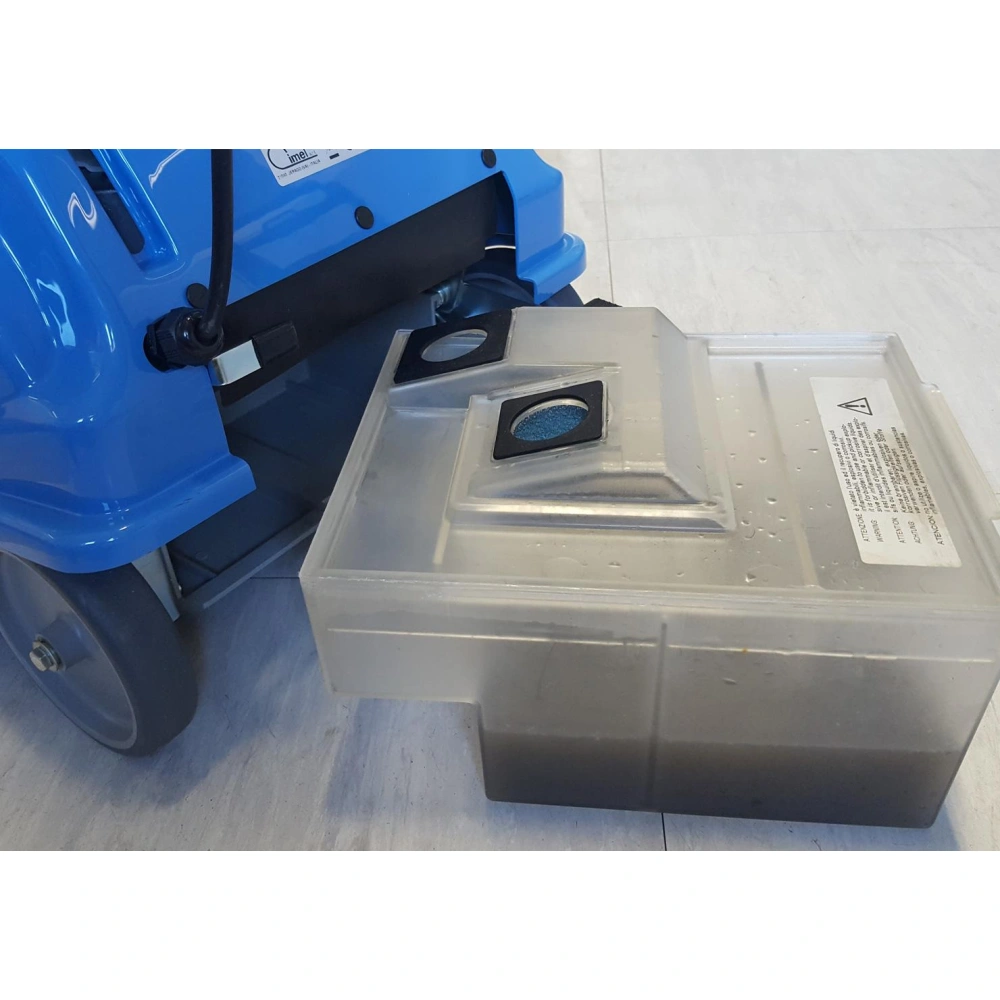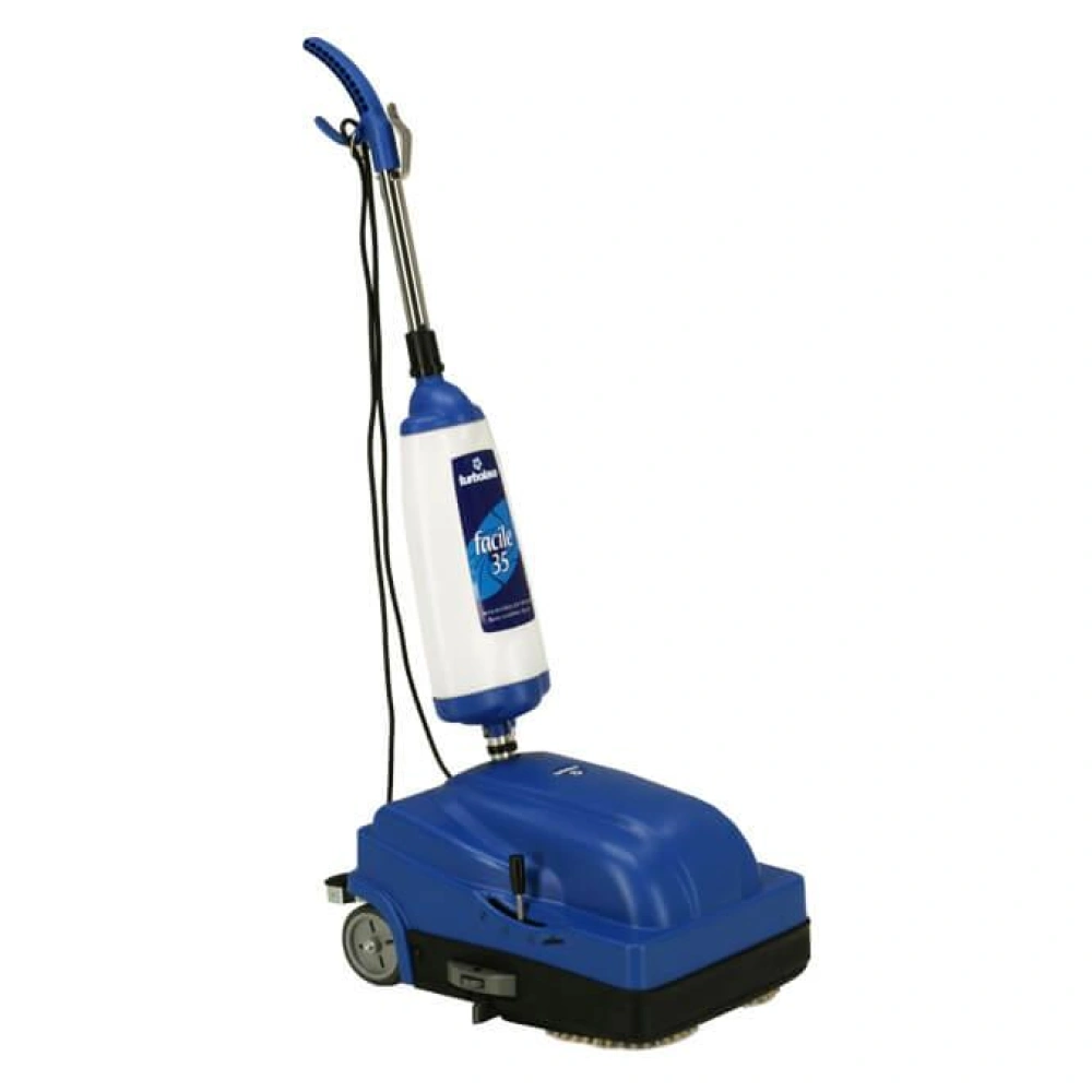 Masina de curatat semi-profesionala Turbolava Facile 35 are un rezervor de 4 litri pozitionat pe maner, acest lucru face ca si golirea si umplerea rezervorului sa fie foarte usoara si rapida. Cantitatea de detergent se poate doza cu ajutorul unui buton pozitionat pe manerul masinii, astfel dozarea se va face precis si in cantitatea dorita de utilizator. Este dotat cu 2 perii rotative, realizate din PVC dur pentru a putea curata eficient pardoselile. Utilizatorul poate modifica inaltimea periilor pentru o curatare mai in profunzime a pardoselilor.