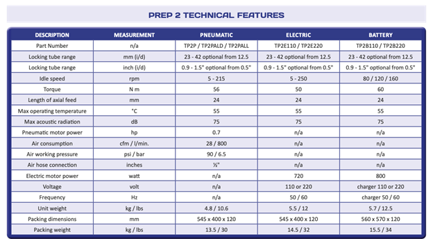 Cel mai mic din gama noastră de mașini de pregătire a capătului cu alimentare directă în linie cu blocare i/d. PREP 2 este mic, ușor, dar puternic, sub formă de acţionare electrică, baterie (110v sau 220v) sau pneumatică.