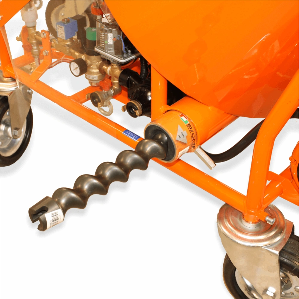 BISONTE PCS-K35 230V este o masina de tencuit ce poate fi utilizata pentru amestecarea si pulverizarea continua a materialelor prafoase pe bază de gips, var și ciment, adezivi, tencuieli colorate sau decorative, stucuri și finisaje de baza.